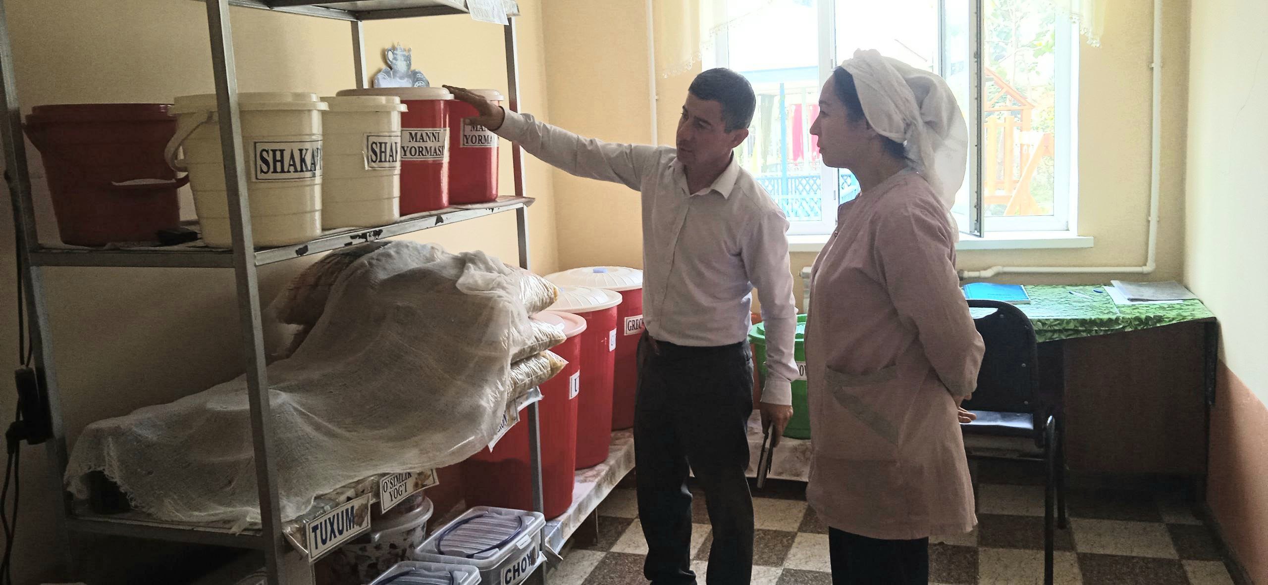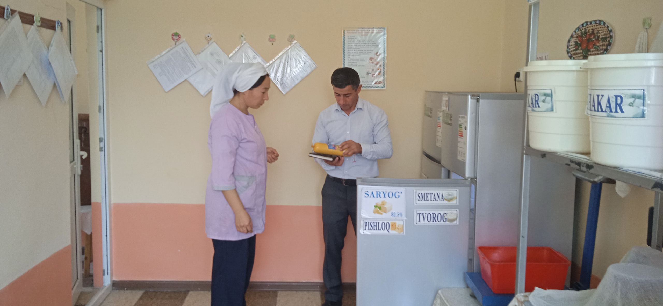 Tadbir davomida oshxonada ovqat tayyorlash, saqlash va tarqatish jarayonlari, shuningdek ichimlik suvi sifati hamda muassasa hududining umumiy sanitariya-gigiyena holati sinchkovlik bilan ko‘zdan kechirildi.
