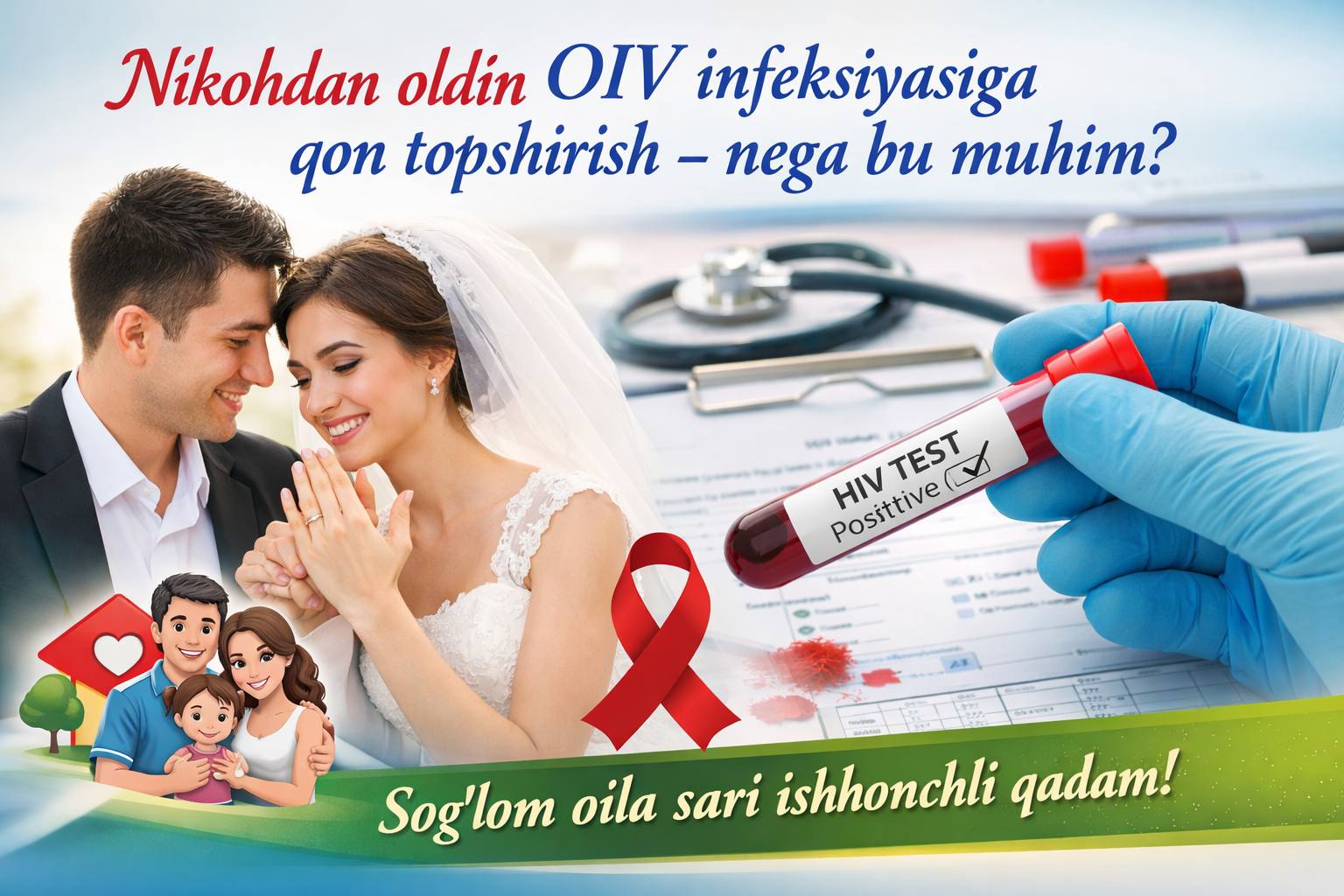 O‘zbekiston Respublikasida nikohdan oldin majburiy tibbiy ko‘rikdan o‘tish tartibi mavjud bo‘lib, u OIV infeksiyasiga tekshiruvni ham o‘z ichiga oladi. Bu jarayon oddiy rasmiyatchilik emas, balki bo‘lajak oila va kelajak avlod salomatligini himoya qilishga qaratilgan muhim profilaktik chora hisoblanadi.